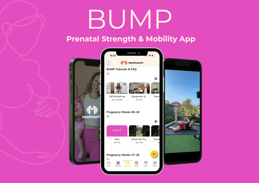 Unlike most pregnancy programs BUMP is programmed by by weeks – not trimesters to reflect how your body changes on a weekly basis. Strength, core, pelvic floor, and birth prep mobility in every session. No gym required.